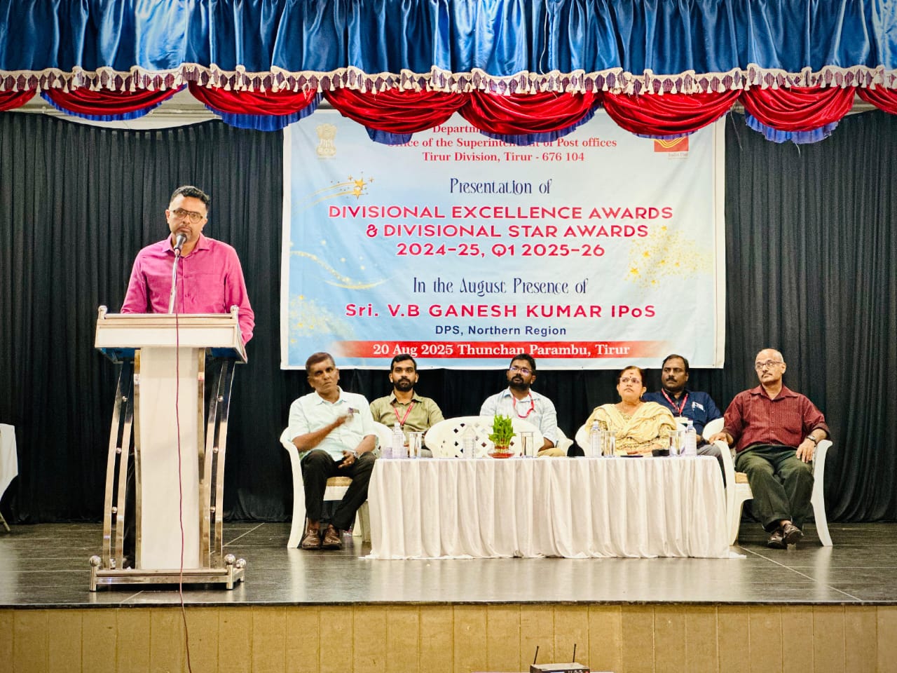 തിരൂർ: തിരൂർ തപാൽ ഡിവിഷന്റെ ആഭിമുഖ്യത്തിൽ തിരൂർ തുഞ്ചൻപറമ്പിൽ വച്ച് കഴിഞ്ഞ സാമ്പത്തിക വർഷത്തിൽ ഏറ്റവും മികച്ച പ്രകടനം കാഴ്ചവെച്ച തപാൽ ജീവനക്കാരെയും പി.എൽ.ഐ ഡയറക്ട് ഏജൻറ്മാരെയും MPKBY ഏജന്റ്മാരെയും ആദരിക്കുകയും ചെയ്തു. ഉത്തരമേഖല ഡയറക്ടർ ഓഫ് പോസ്റ്റൽ സർവീസസ് വി.ബി ഗണേഷ് കുമാർ ഉദ്ഘാടനം ചെയ്തു. തിരൂർ പോസ്റ്റൽ സൂപ്രണ്ട് എം.കെ ഇന്ദിര അധ്യക്ഷത വഹിച്ചു. അസി. പോസ്റ്റൽ സൂപ്രണ്ട് മനോജ് കെ മേനോൻ സ്വാഗതം പറഞ്ഞു. സബ് ഡിവിഷൻ അസി. സൂപ്രണ്ട് അനിൽ ദേവ്, പോസ്റ്റൽ ഇൻസ്പെക്ടർ മാരായ രാഹുൽ കെ, വിഷ്ണു സി ടി എന്നിവർ സംസാരിച്ചു. തിരൂർ ഹെഡ് പോസ്റ്റ് മാസ്റ്റർ അബ്ദുൾ കാദർ, അബ്ദുൾ മനാഫ്, ശ്രീജ പി എന്നിവർ ബിസിനസ്സ് അനുഭവം പങ്ക് വെച്ച് സംസാരിച്ചു. വിനോദ് കുമാർ വി കെ ടി, രമ്യ മോഹൻ, ഗീതു, അശ്വതി, ബിൻസി, ജിഷ, സാജിദ്, അജിത്, ദിൽജിത്, സുരേഷ്, സബീഷ്, പ്രേംകുമാർ, അരുൺ, നിധീഷ് തുടങ്ങിയവർ നേതൃത്വം നൽകി.