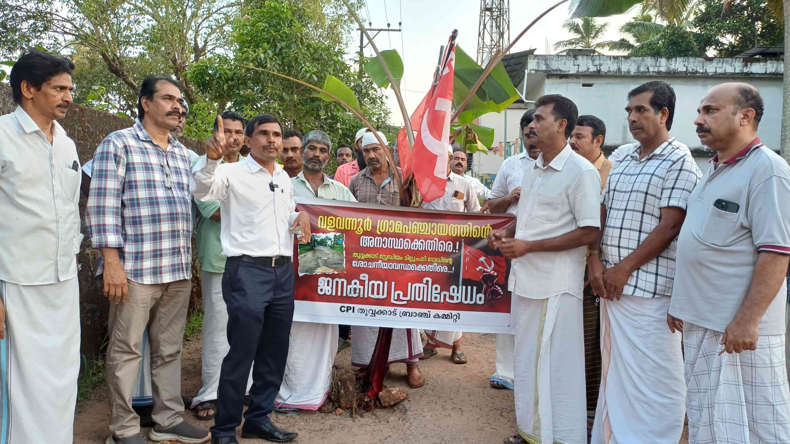 തുവ്വക്കാട്: വളവന്നൂർ ഗ്രാമപഞ്ചായത്തിലെ തുവ്വക്കാട് സ്റ്റേഡിയം – മില്ലുംപടി റോഡിന്റെ ശോചനീയാവസ്ഥയിൽ പ്രതിഷേധിച്ച് സി.പി.ഐ തുവ്വക്കാട് ബ്രാഞ്ച് കമ്മിറ്റിയുടെ നേതൃത്വത്തിൽ ജനകീയ പ്രതിഷേധം സംഘടിപ്പിച്ചു. തകർന്നുകിടക്കുന്ന റോഡിൽ