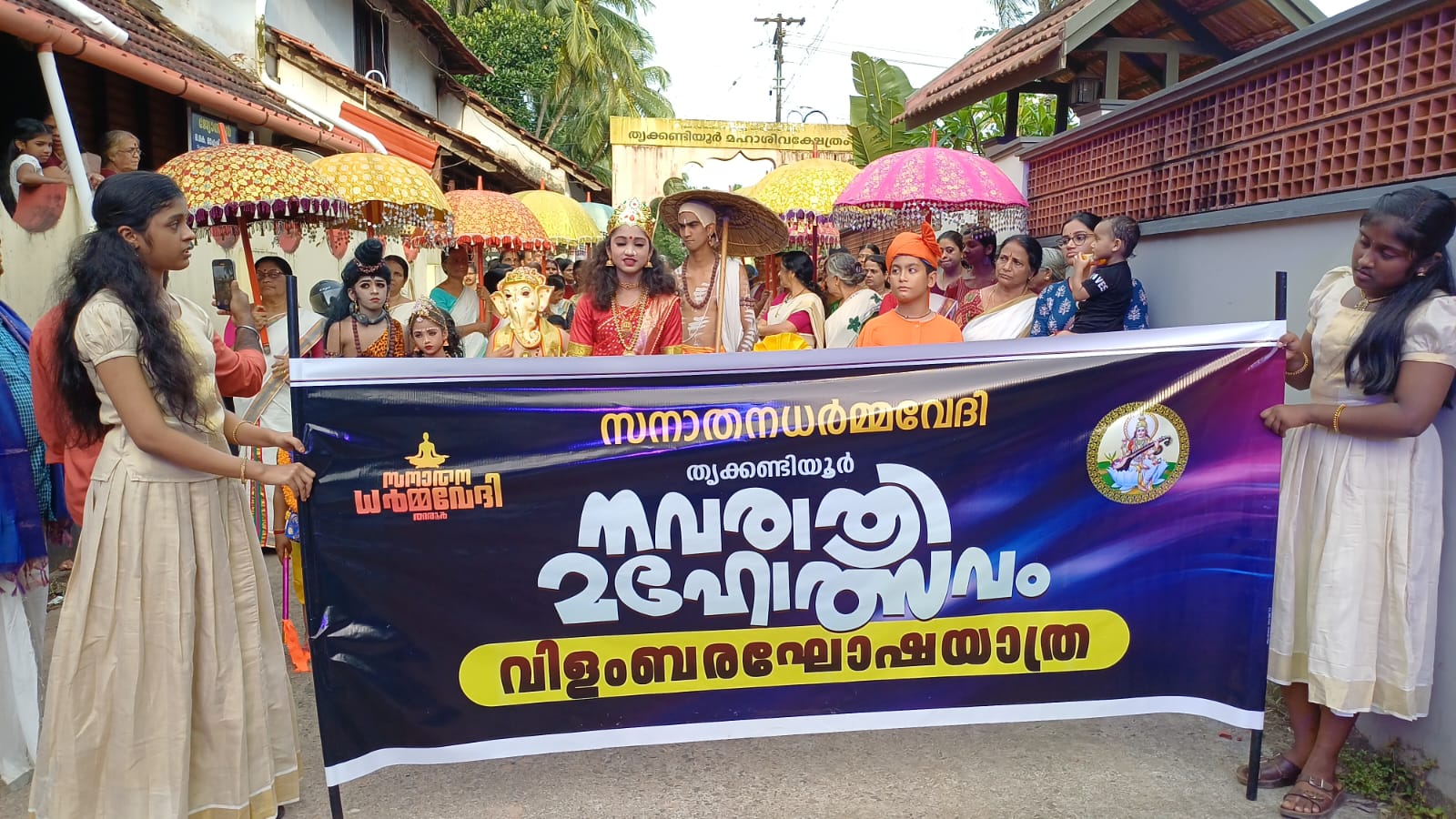 തിരൂർ: നവരാത്രി മഹോത്സവത്തോടനുബന്ധിച്ച് തിരൂർ തൃക്കണ്ടിയൂർ സനാതന ധർമ്മവേദിയുടെ നേതൃത്വത്തിൽ വിളംബര ഘോഷയാത്ര സംഘടിപ്പിച്ചു.