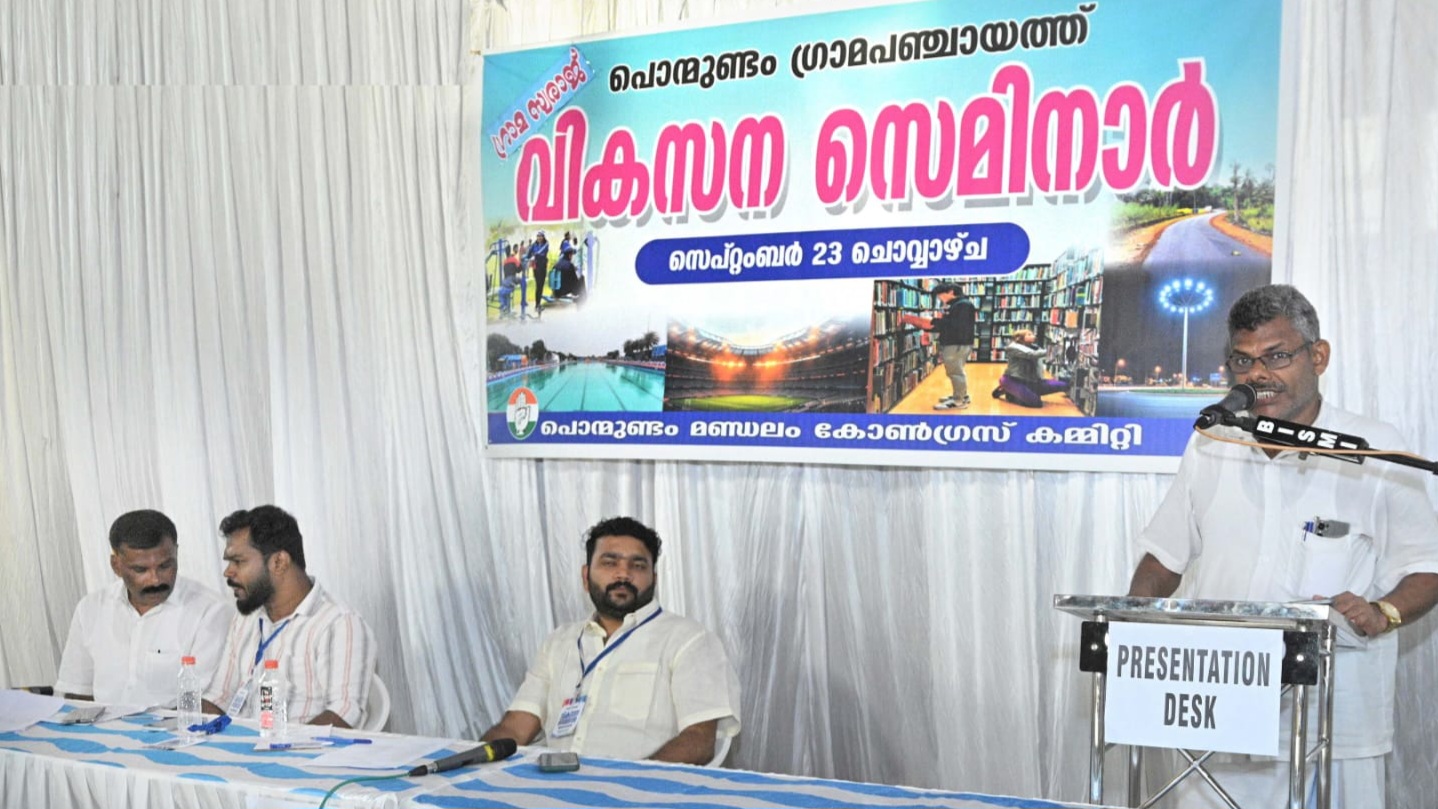 വൈലത്തൂർ: കെ.പി.സി.സിയുടെ അഹോന പ്രകാരം പൊന്മുണ്ടം മണ്ഡലം കോൺഗ്രസ് കമ്മറ്റി വികസന സെമിനാർ സംഘടിപ്പിച്ചു. മണ്ഡലം പ്രസിഡന്റ് ഇ. ബാവാഹാജി ഉദ്ഘാടനം ചെയ്തു. ഡി.സി.സി സെക്രട്ടറി ഹൈദ്രോസ് മാസ്റ്റർ, ബ്ലോക്ക് കോൺഗ്രസ് പ്രസിഡണ്ട് ആർ. കോമുക്കുട്ടി, ആർ.സി ഹംസ, അഡ്വ. ഡാനിഷ്, സഫീർ വരിക്കോട്ടിൽ, കെ. കെ മിസ്ഹബ്, ടി.ബഷീർ മാസ്റ്റർ, ജമാൽ പുല്ലട്ട്, ഫാസിൽ മാസ്റ്റർ, പി.കെ ജാബിർ, പി.കെ അഷ്റഫ്, രാജേഷ്, ടി. സൈനുദ്ധീൻ, സി.കെ സുഹൈൽ, എൻ. ഇസ്മായിൽ, പി. അജിത തുടങ്ങിയവർ സംസാരിച്ചു.