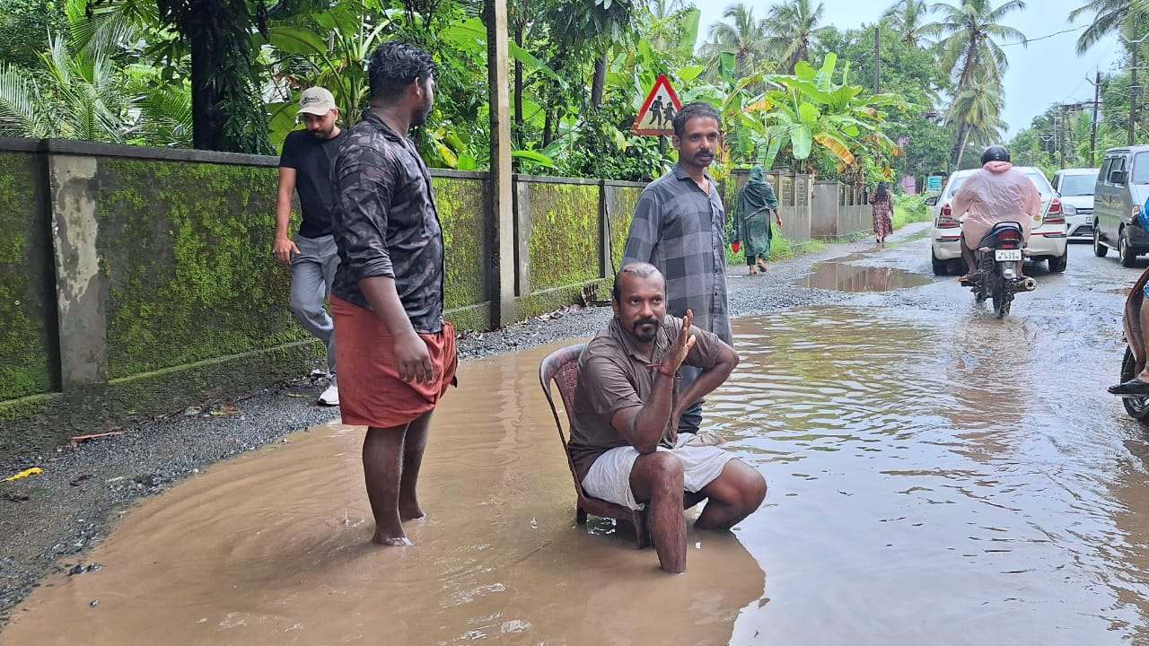 ആലത്തിയൂർ: മഴ പെയ്തതോടെ പൂർണമായും തകർന്ന ആലത്തിയൂർ – ചമ്രവട്ടം റോഡിലെ വെള്ളക്കെട്ടിൽ കസേരയിട്ടിരുന്നു വേറിട്ട പ്രതിഷേധം നടത്തി യുവാവ്. എസ്.പി മണികണ്ഠൻ എന്ന യുവാവാണ് ഏറെനേരം മഴയും കൊണ്ട് നടുറോഡിലെ വെള്ളക്കെട്ടിൽ കസേരയിട്ട് ഇരുന്നു പ്രതിഷേധിച്ചത്. മണികണ്ഠന്റെ പ്രതിഷേധത്തിന് നാട്ടുകാരും യാത്രക്കാരും പിന്തുണയുമായി എത്തി. തന്റെ പ്രതിഷേധം കണ്ടു അധികൃതർ കണ്ണു തുറക്കും എന്ന പ്രതീക്ഷയിലാണ് മണികണ്ഠൻ. റോഡിലെ കുഴികളിൽ വീണ് നിരവധി വാഹനങ്ങളാണ് കഴിഞ്ഞ ഏതാനും ദിവസങ്ങളിലായി അപകടത്തിൽപ്പെട്ടത്.