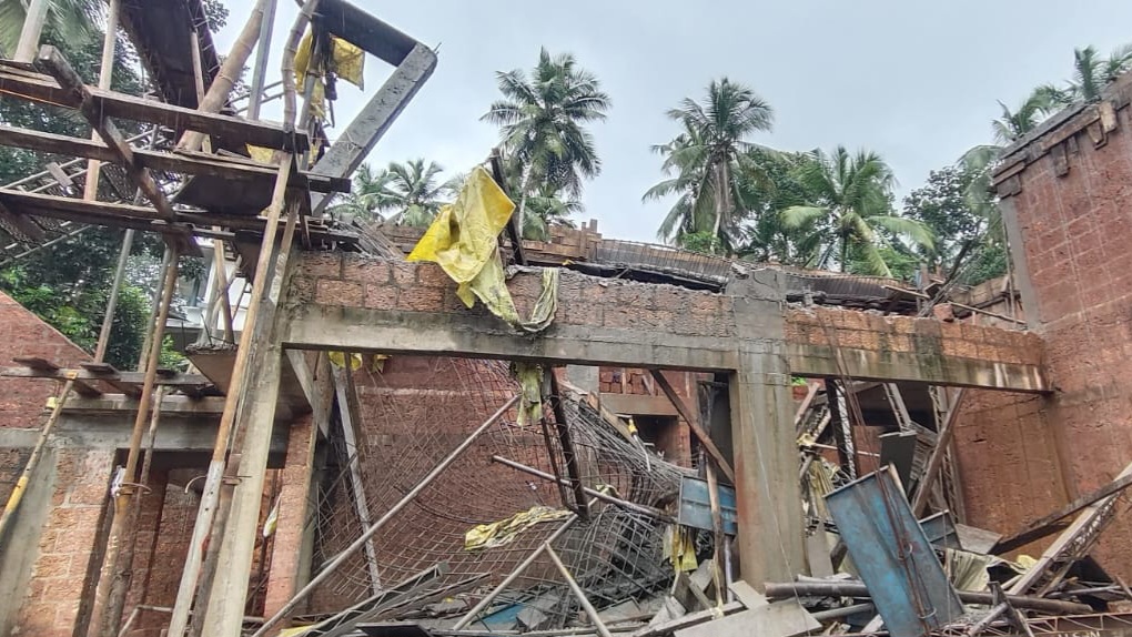 കൊണ്ടോട്ടി: പുളിക്കൽ ഐക്കരപ്പടിയിൽ കോണ്ക്രീറ്റ് ജോലി നടക്കുന്നതിനിടെ കെട്ടിടം തകർന്നുവീണു. പണി കാണുന്നതിനായി സംഭവസ്ഥലത്തെത്തിയ 10 വയസുകാരനുള്പ്പെടെയുള്ള നാല് പേർക്ക് പരിക്കേറ്റു. കെട്ടിടത്തിന് സമീപത്തെ വീട്ടിലെ ഷാമിലിനാണ് (10) പരിക്കേറ്റത്. ബാക്കി മൂന്ന് പേർ തൊഴിലാളികളാണ്. ആരുടെയും പരിക്ക് ഗുരുതരമല്ല.