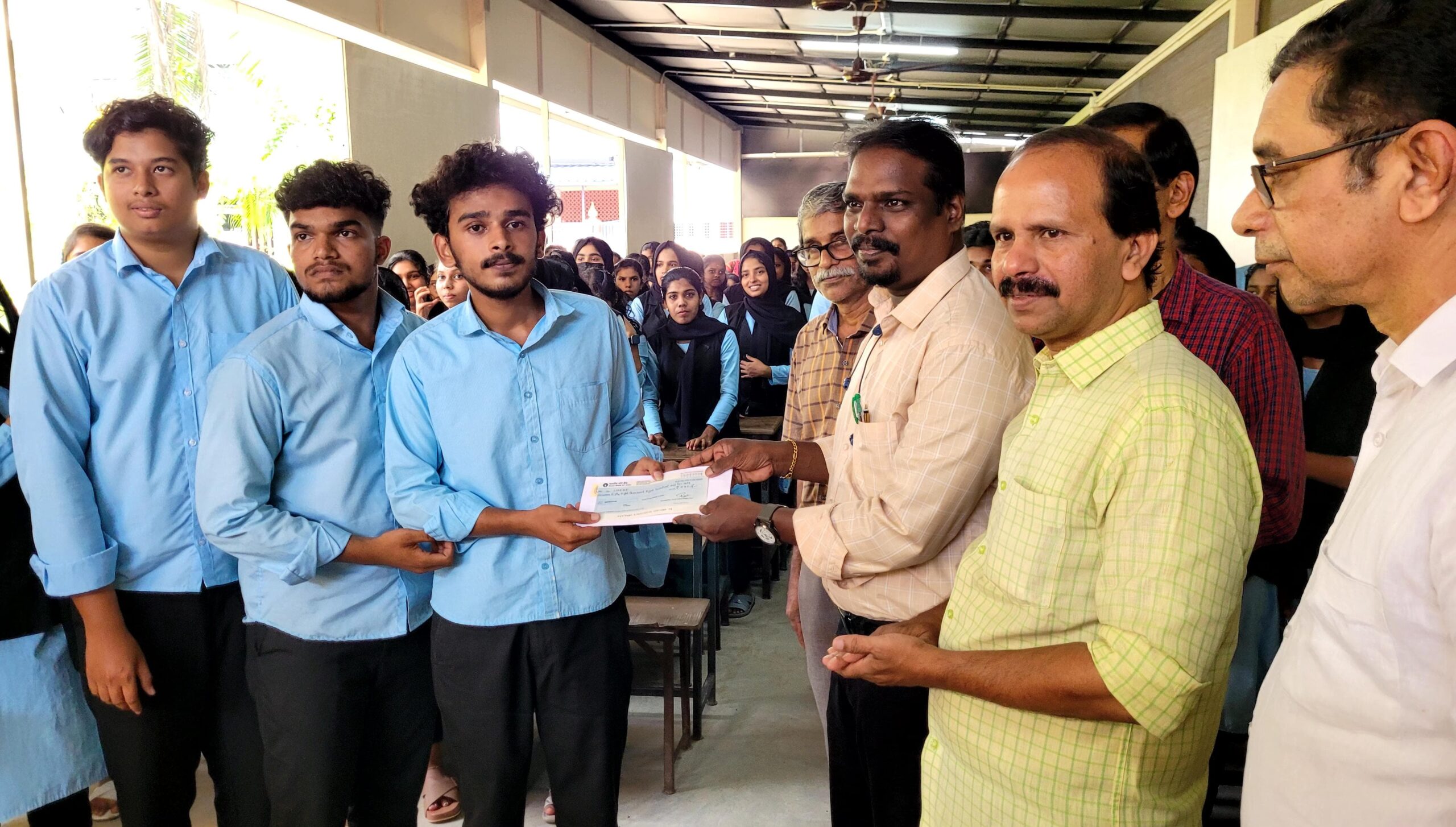 കോളേജിലെ ഓഡിറ്റോറിയത്തിൽ വച്ച് നടന്ന പരിപാടിയിൽ വിദ്യാർത്ഥി പ്രതിനിധികൾ തിരൂർ സഹകരണ സംഘം അസിസ്റ്റന്റ് രജിസ്ട്രാർ എ. പ്രഭാഷന് ചെക്ക് നൽകി. ഭരണസമിതി പ്രസിഡണ്ട് കെ.വി. പ്രസാദ്, വൈസ് പ്രസിഡണ്ട് പി.പി. ഉണ്ണികൃഷ്ണൻ, ഡയറക്ടർമാരായ ഉമ്മർ ഫാറൂഖ്. കെ.എം, സുജയ.കെ, യോഗേഷ്.സി, പ്രിൻസിപ്പാൾ എംഎം. രവീന്ദ്രൻ, സെക്രട്ടറി കെ.പി. ഷാജിത്ത്, വിദ്യാർത്ഥി പ്രതിനിധികളായ നബീൽ, റാസിക്ക്, കാർത്തിക്, റുക്സാന, ഷിർഫ സന എന്നിവർ പങ്കെടുത്തു.